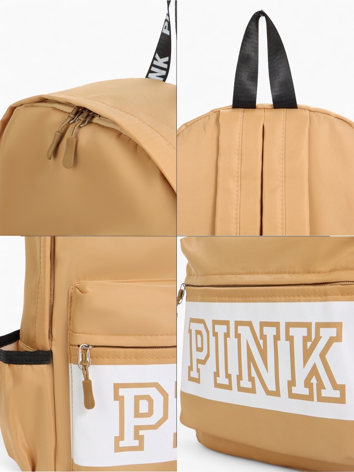 Рюкзак школьный на молнии, с карманами, с надписью, размер 28×11×39 см, бежевый