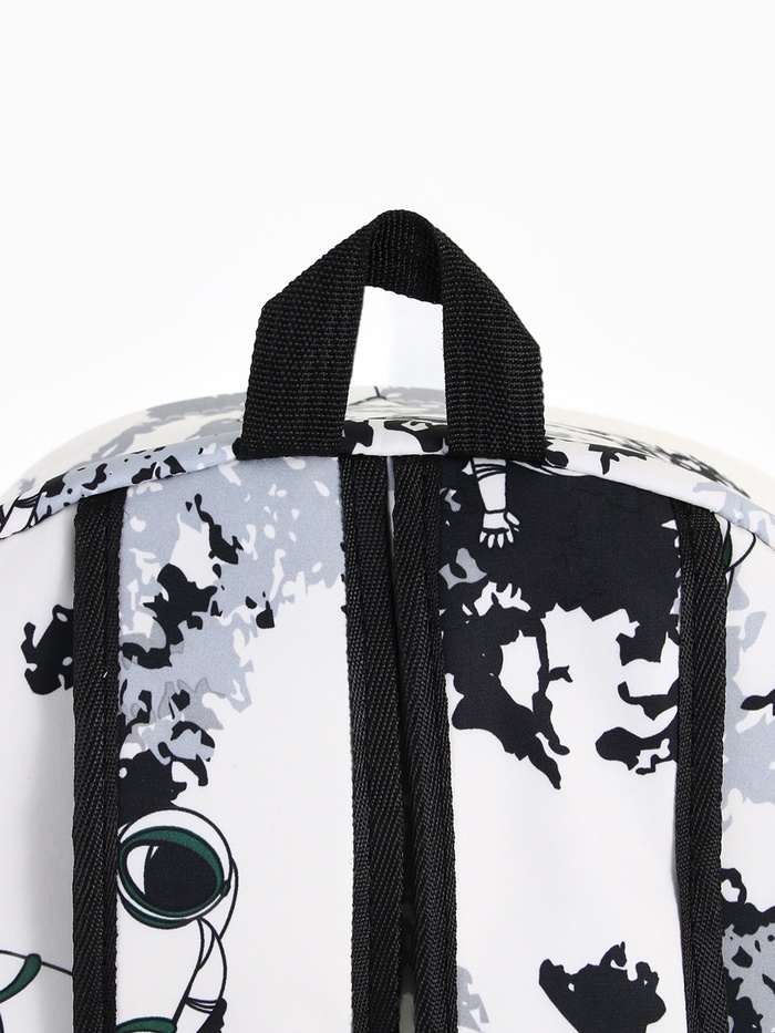Рюкзак школьный на молнии, с карманами, с принтом, размер 30×17×43 см, белый/серый