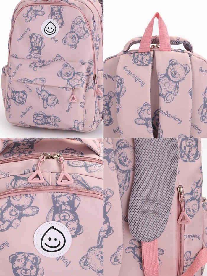 Рюкзак школьный на молнии, с карманами, с рисунком, размер 30×14×42.5 см, розовый
