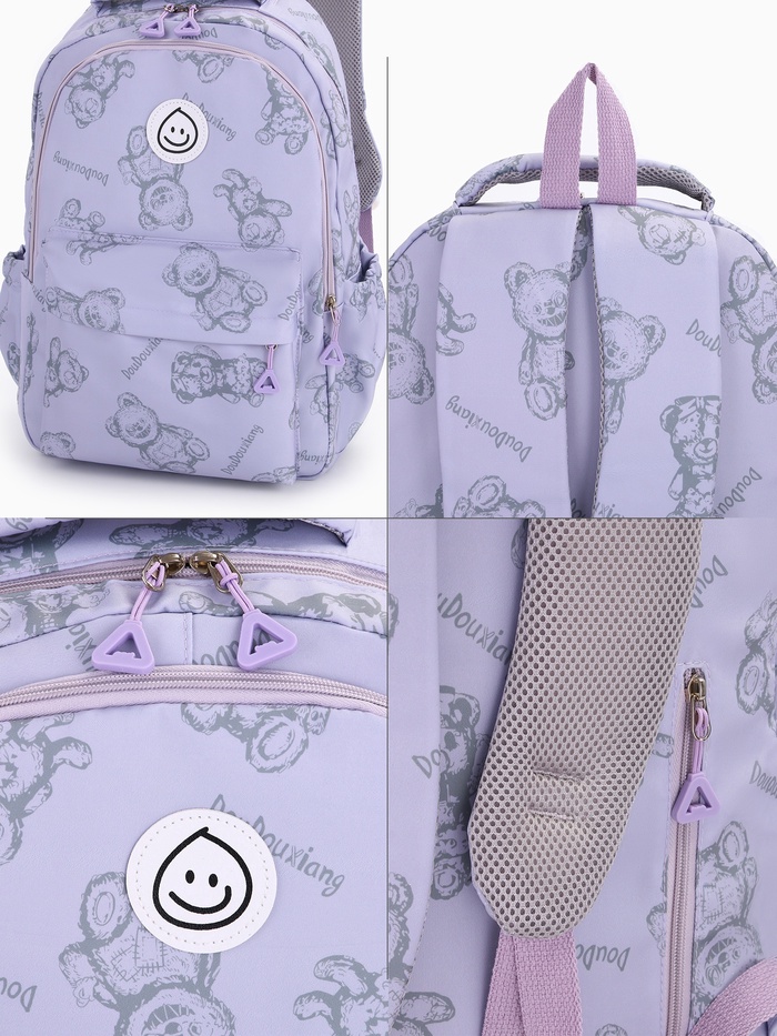Рюкзак школьный на молнии, с карманами, с рисунком, размер 30×14×42.5 см, сиреневый