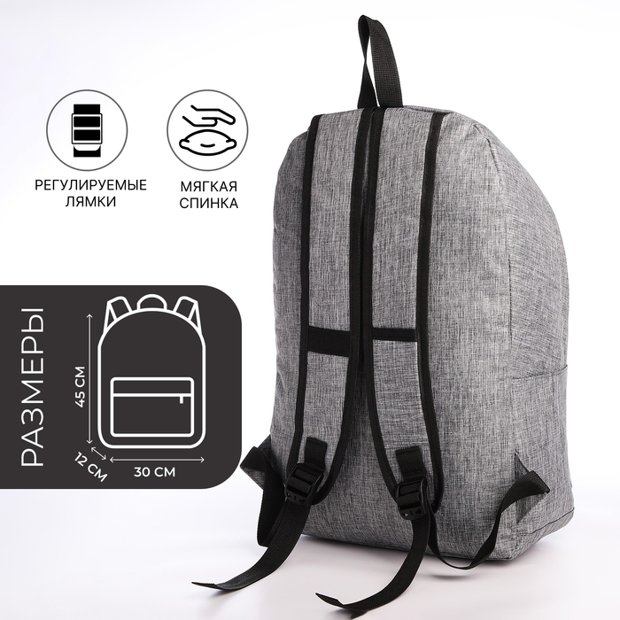 Рюкзак школьный на молнии, с карманом, однотонный, размер 30×12×45 см, серый