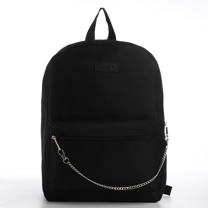 Рюкзак школьный текстильный с цепочкой, 38×29×11 см, чёрный