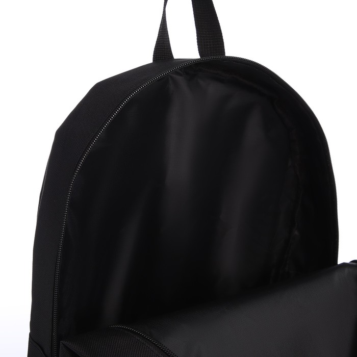Рюкзак школьный текстильный с карманом кожзам, 38×29×11 см, чёрный