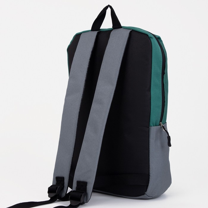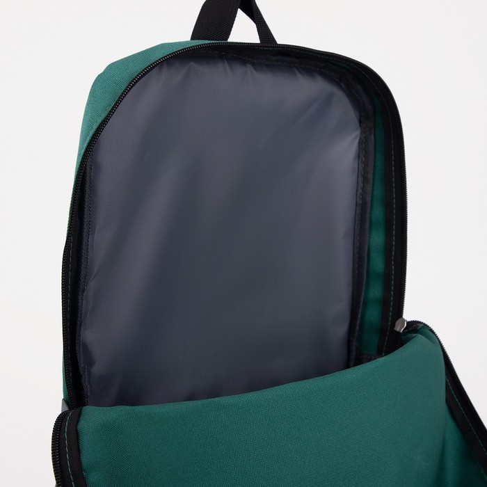 Рюкзак школьный текстильный с карманом, зелёный, черный, 22×13×30 см