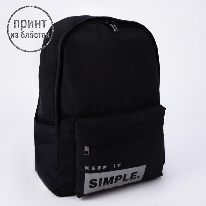Рюкзак школьный текстильный SIMPLE, чёрный, 38 х 12 х 30 см