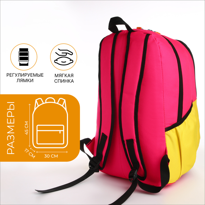 Рюкзак школьный Virtual на молнии, с карманами, жёлтый/розовый