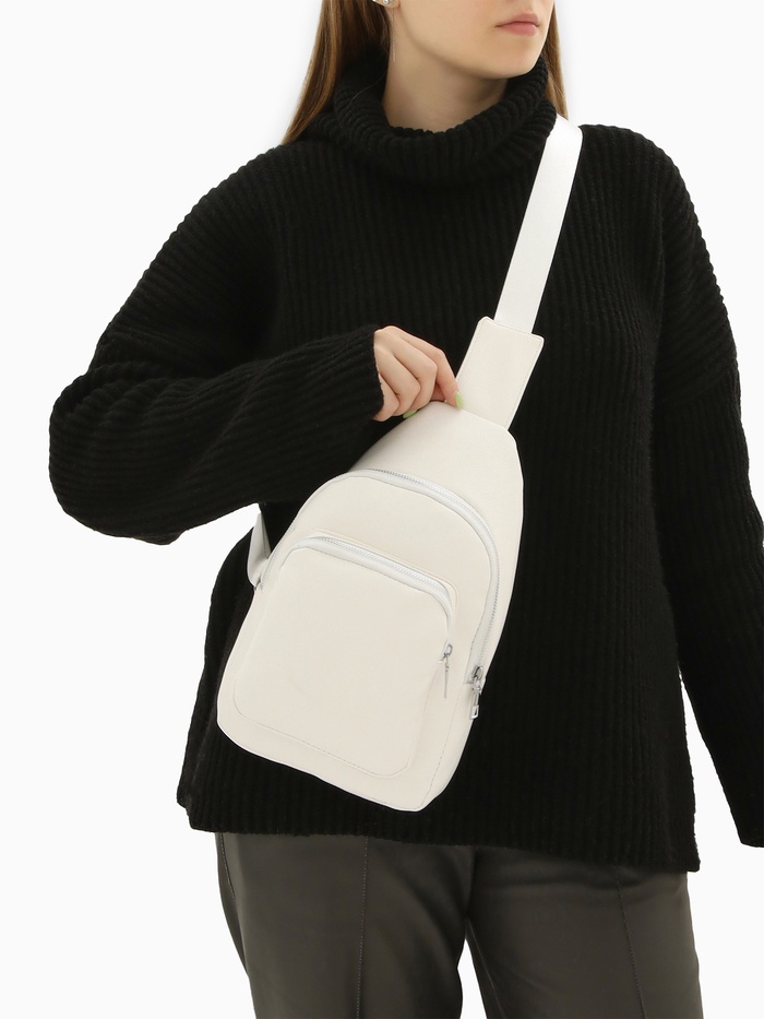 Этот слинг-рюкзак создан для активного городского стиля жизни. Он сочетает в себе легкость ношения и практичность, становясь удобным спутником в повседневных делах. Классический белый цвет делает его универсальным аксессуаром для любого гардероба.