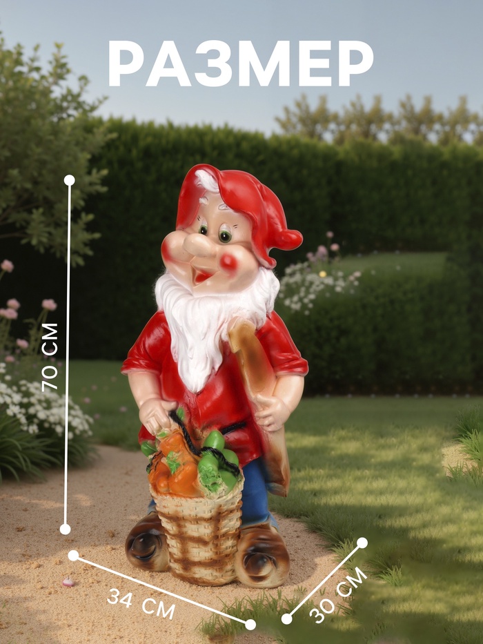 Садовая фигура из гипса «Гном с корзиной овощей», 70×30×34 см