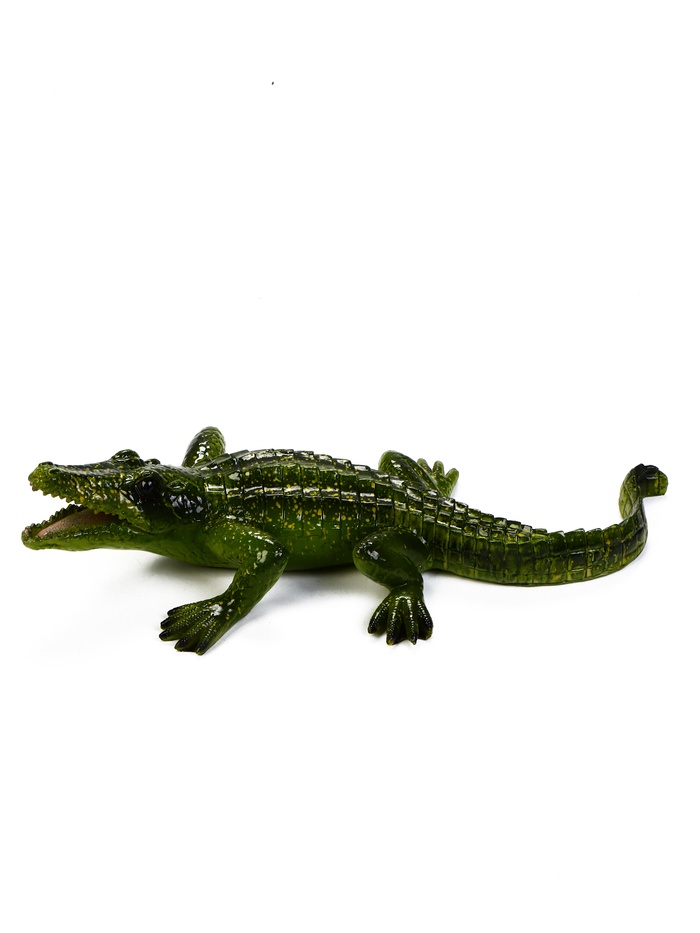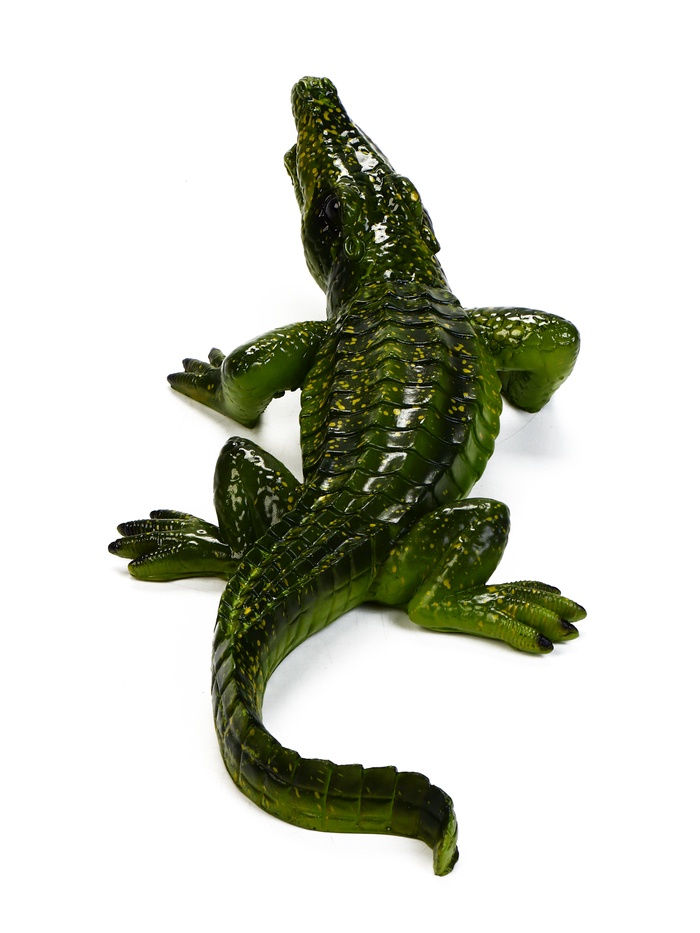 - Реалистичное исполнение: фигура передаёт характерные черты крокодила — текстуру кожи, форму тела и пасти. Зелёный цвет соответствует естественному окрасу рептилии.