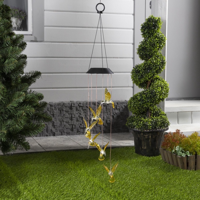 Преобразите ваш сад в уютное место для вечернего отдыха с этим элегантным светильником, который сочетает в себе функциональность и эстетику. Его дизайн в виде колибри, парящей над цветами, придает пространству особый шарм, а мульти свечение создает атмосферу уюта и гармонии.