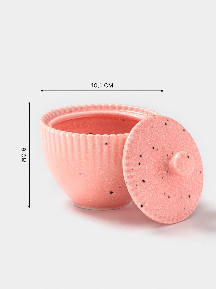 - Эстетичный дизайн: утончённый розовый оттенок и плавные линии делают сахарницу не только функциональным предметом, но и красивым аксессуаром для сервировки стола.