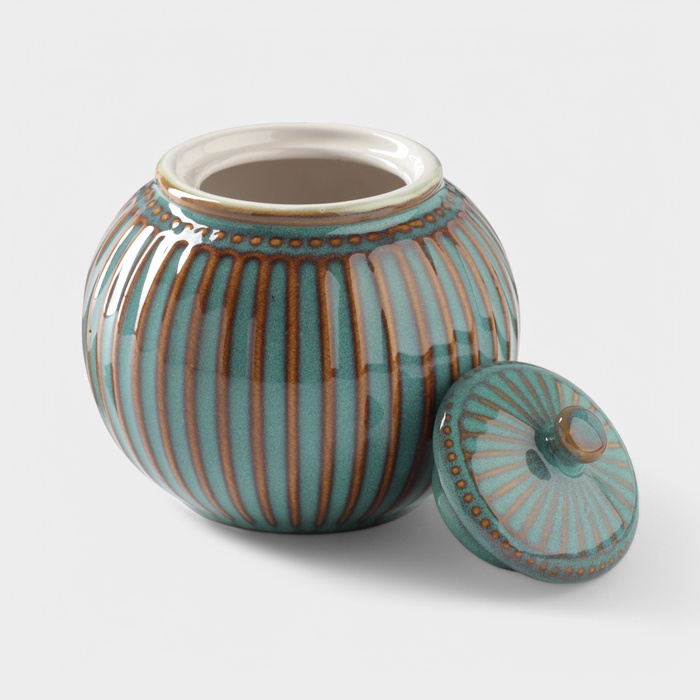 Изготовленная из высококачественной керамики, сахарница отличается прочностью и долговечностью. Глубокий цвет и рельефная текстура придают ей особый шарм, а узоры в винтажном стиле делают её универсальной для любого интерьера. Круглая форма и объём 350 мл делают сахарницу удобной в использовании.