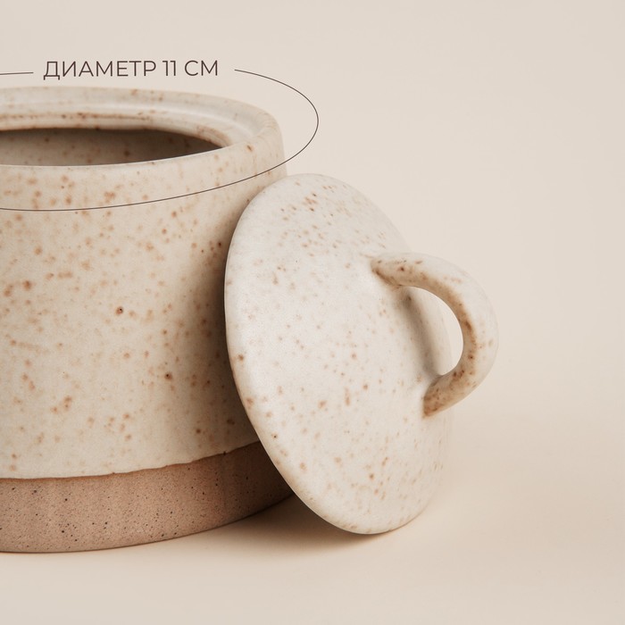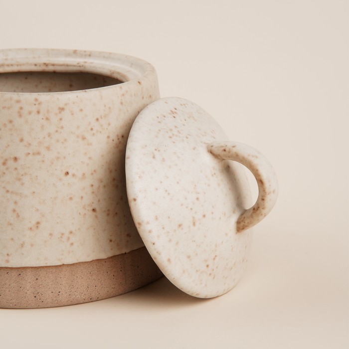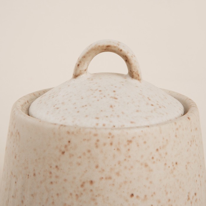 - Элегантный дизайн: Нежный бежевый цвет и узор в крапинку придают сахарнице изысканный и уютный вид.