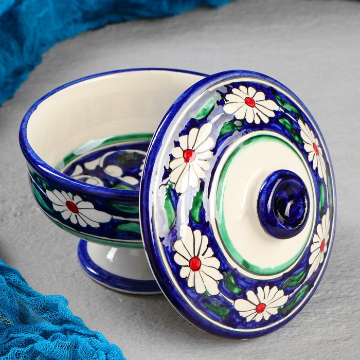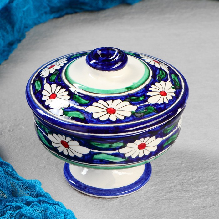 Сахарница Риштанская Керамика "Цветы", 250 мл, синяя