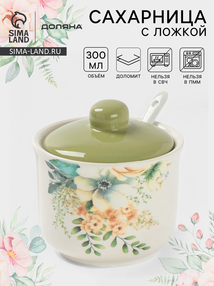 Эта сахарница не только сохранит ваш сахар сухим и свежим, но и порадует глаз своим красивым дизайном. Керамическая сахарница с ложкой привнесет нотку романтики и нежности в вашу кухню. Сахарница «Цветы» Доляна – это прекрасный выбор для тех, кто ценит красоту и уют в мелочах.