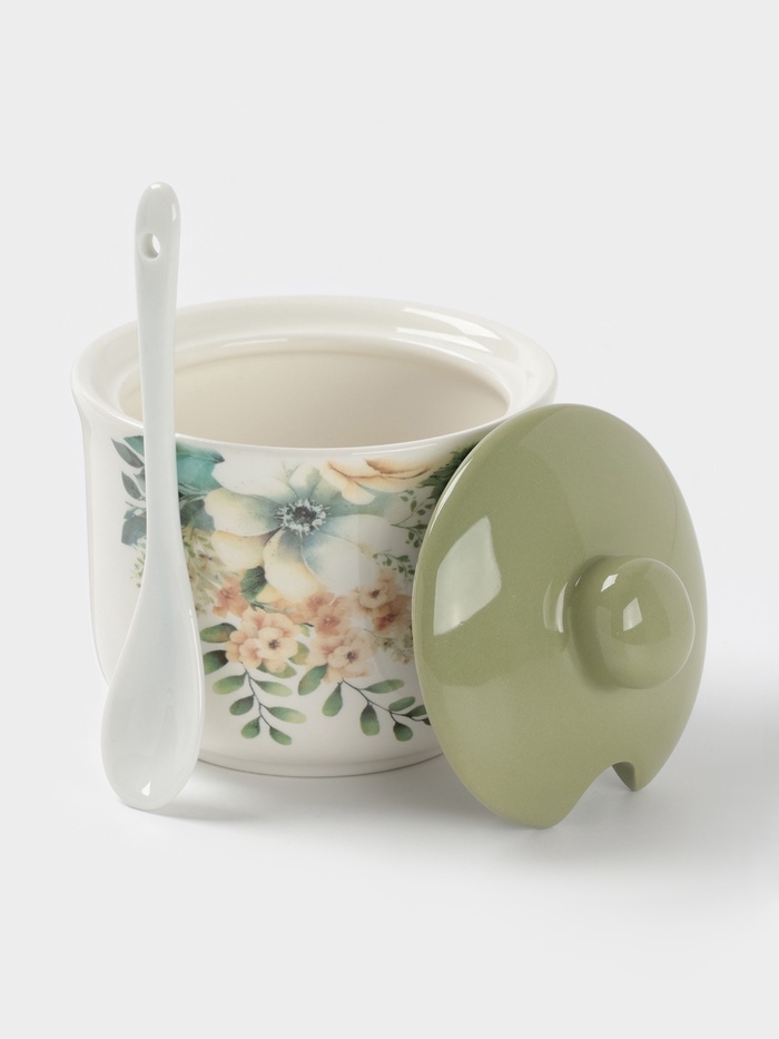 Прелестная сахарница из доломита, украшенная нежным цветочным рисунком. В комплекте удобная ложечка для сахара. Объем: 300 мл. Станет украшением вашего стола и привнесет весеннюю атмосферу в ваши чаепития.