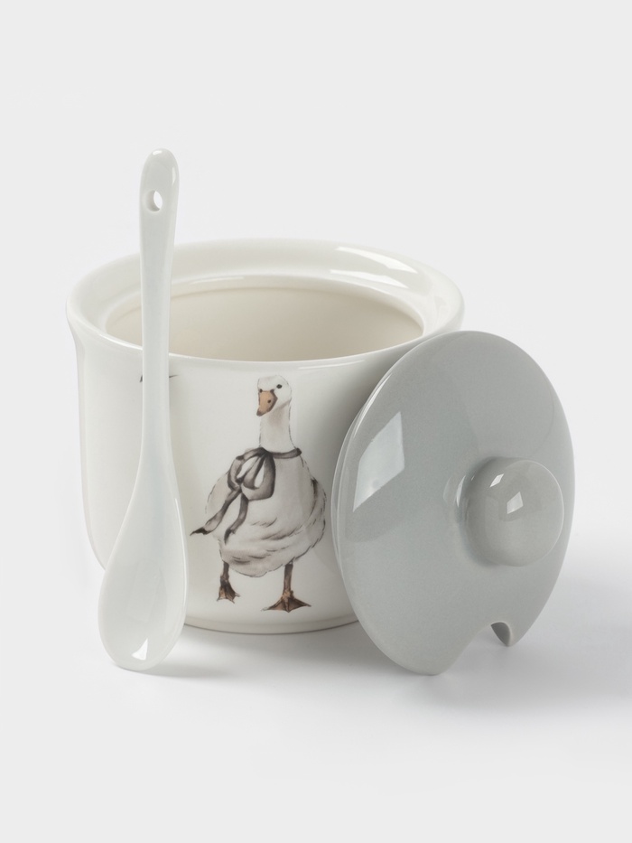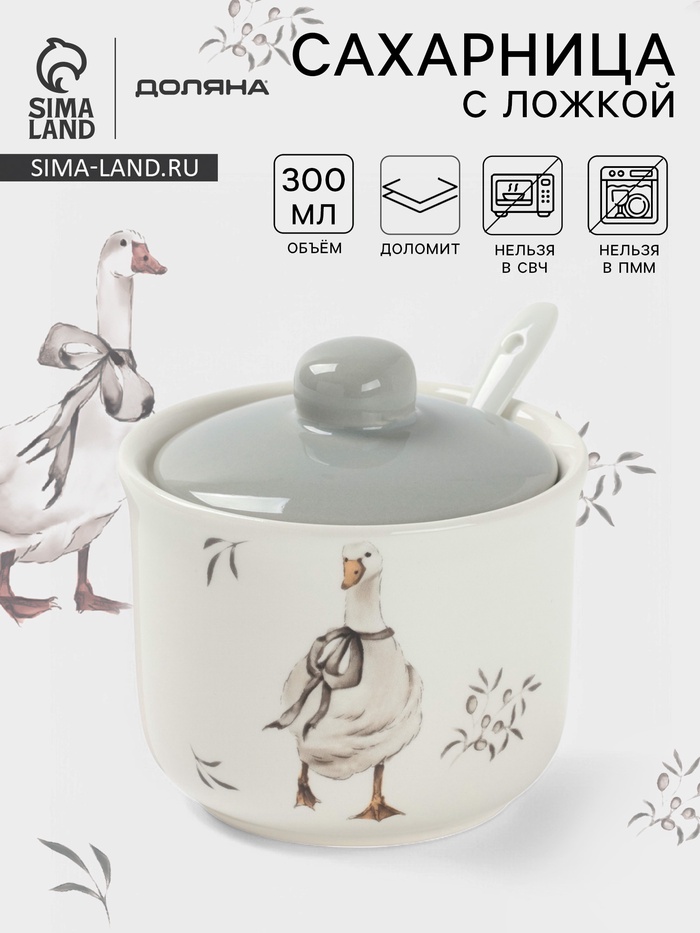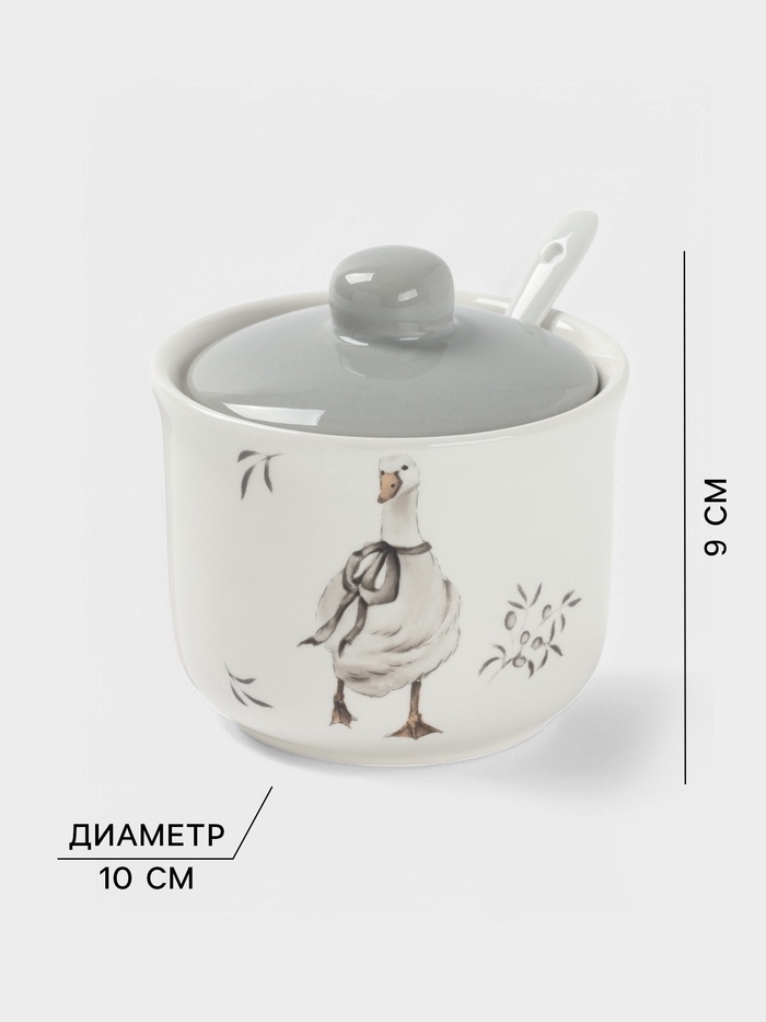Эта сахарница станет не только функциональным предметом, но и красивым акцентом на вашем столе. Керамическая сахарница с ложкой привнесет в ваш дом атмосферу тепла и деревенского уюта. Сахарница «Гуси» Доляна – прекрасный выбор для создания душевной атмосферы на кухне.