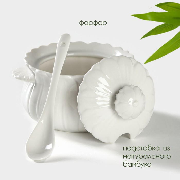 Сахарница BellaTenero «Тюльпан» изготовлена из качественного фарфора. Кухонные изделия из фарфора отличаются прочностью и надёжностью, устойчивы к появлению царапин и резким перепадам температур. Благодаря оригинальному дизайну и причудливым формам сахарница с ложкой отлично впишется в интерьер вашей кухни и станет настоящей изюминкой при сервировке.