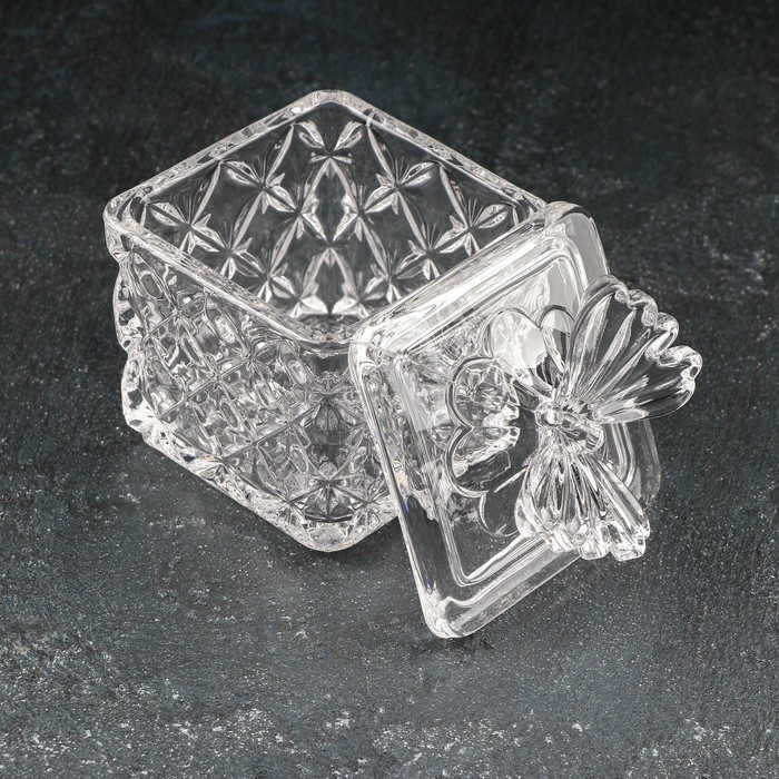 Сахарница с крышкой – для любителей роскоши и хрусталя. Сахарница выполнена из прочного стекла, поэтому слабо подвержена повреждениям. Одновременно с тем легко моется и прекрасно впишется на как на кухонном столе, так и на праздничном.