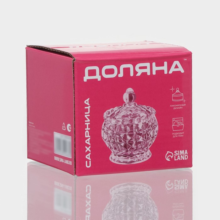 Сахарница «Пирамиды» выполнена из прочного рельефного стекла. Одновременно с тем легко моется и прекрасно впишется на как на кухонном столе, так и на праздничном. Сахарницу можно использовать для хранения и подачи варенья, мёда, конфет.