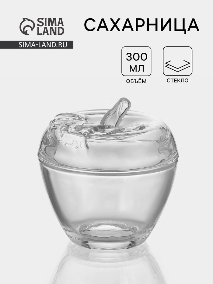 Сахарница «Яблоко» выполнена из прочного стекла, поэтому слабо подвержена повреждениям. Одновременно с тем легко моется и прекрасно впишется как на кухонном столе, так и на праздничном. Сахарницу можно использовать для хранения и подачи варенья, мёда, конфет.