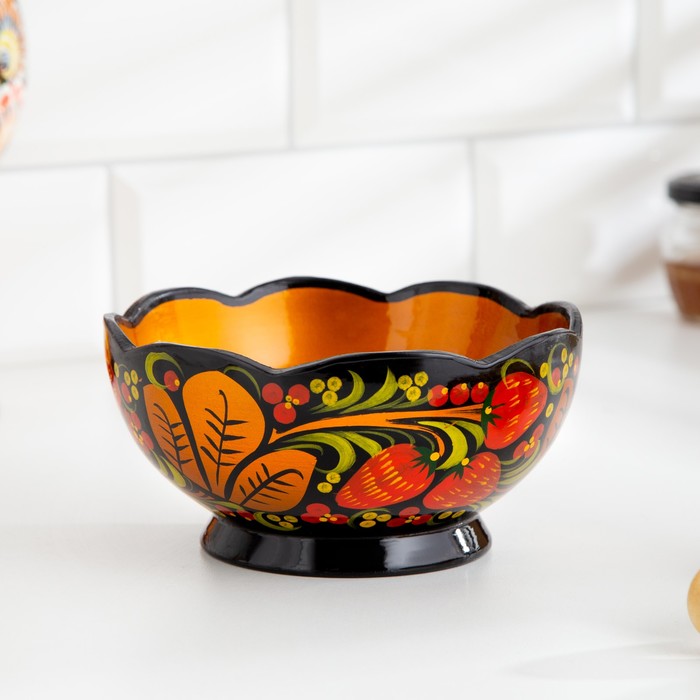 Традиционные элементы Хохломы — ягоды рябины и земляники, цветы и листья, птицы, рыбы и звери.