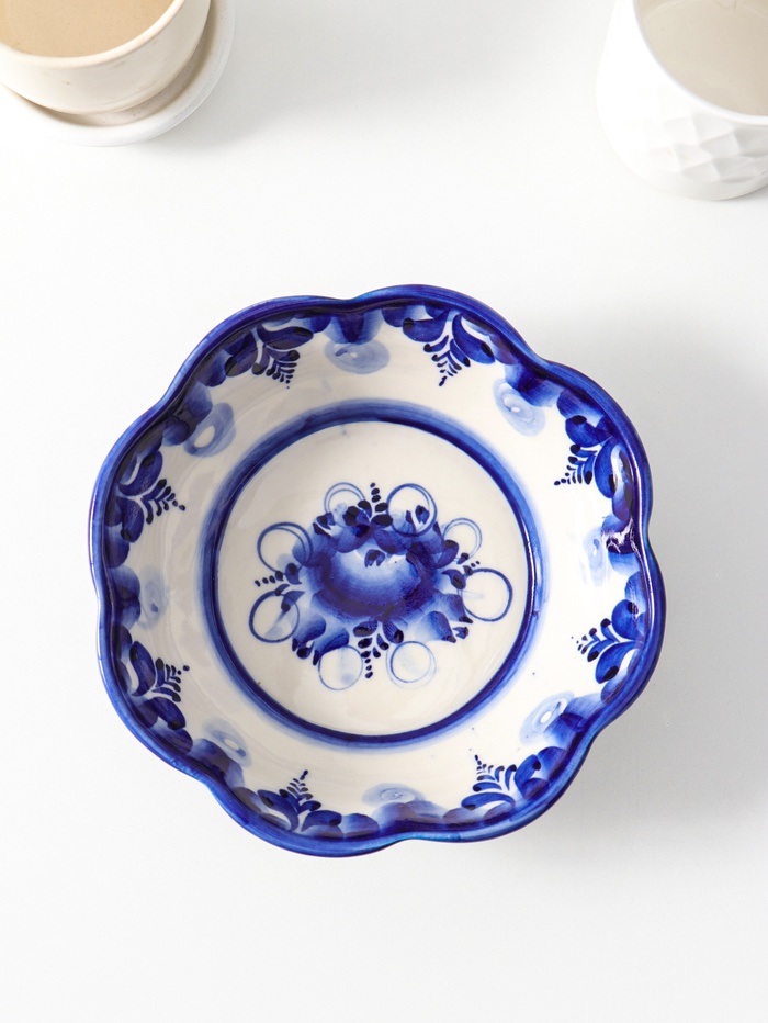 Салатник "Тройка цветок большой", 0,5л, 18х5 см, гжель
