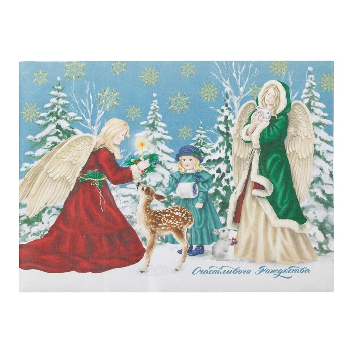 Салфетка сервировочная новогодняя на стол «Этель. Счастливого Рождества», синяя, 30×40 см