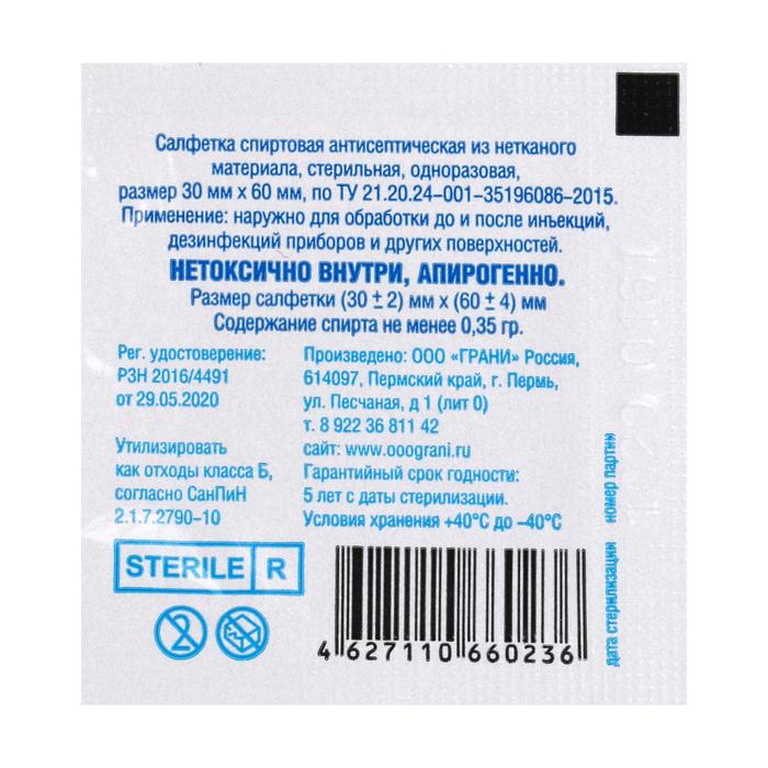 Благодаря пропитке 70-процентным раствором этилового спирта указанная салфетка, кроме антисептических свойств, обладает также сильным противомикробным/антибактериальным эффектом.