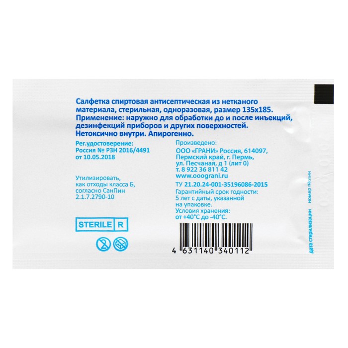 Благодаря пропитке 70-процентным раствором этилового спирта указанная салфетка, кроме антисептических свойств, обладает также сильным противомикробным/антибактериальным эффектом.