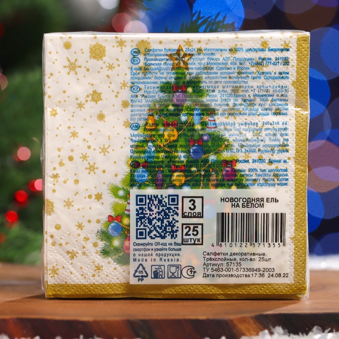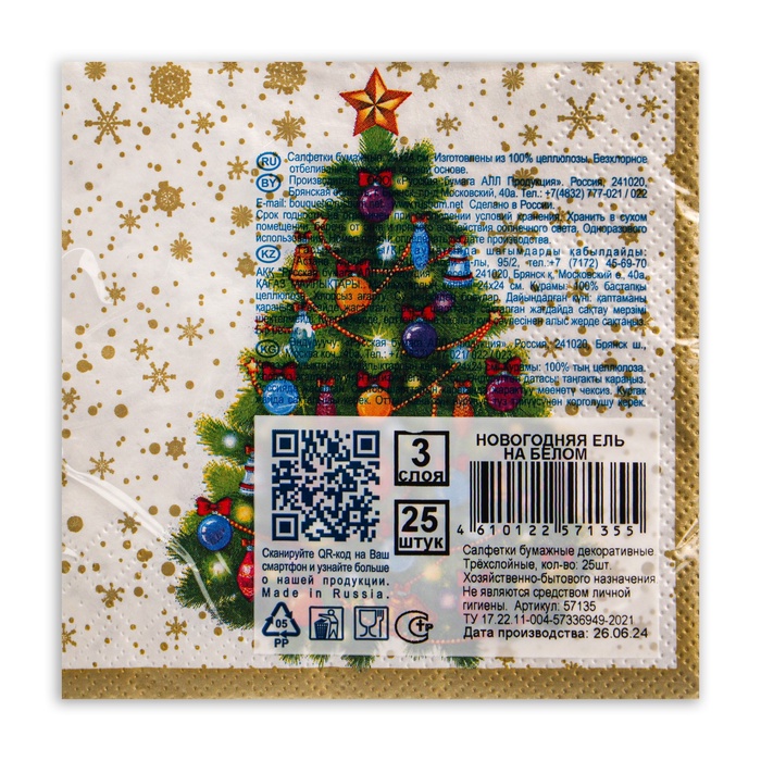 Качественные трехслойные бумажные салфетки изготовлены из качественной целлюлозы. На салфетках нанесен яркий рисунок.