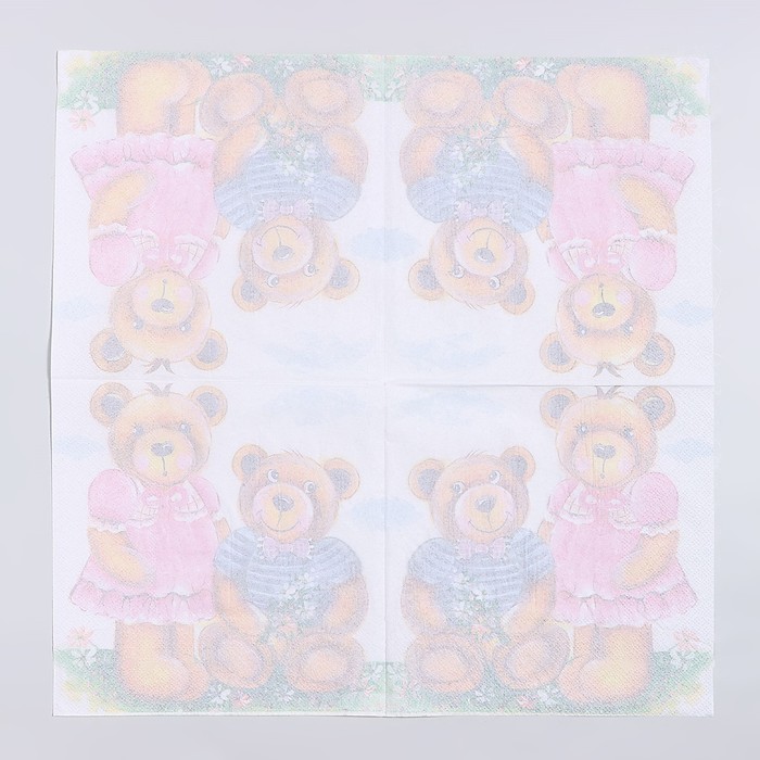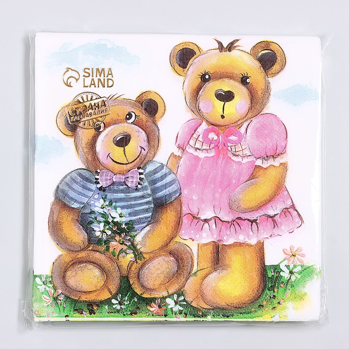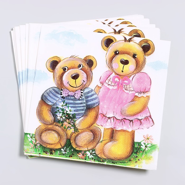 Бумажные салфетки «Медвежата» — это идеальное решение для создания праздничной атмосферы. В наборе 20 салфеток, украшенных парочкой милых мишек. Они подойдут для романтического ужина, празднования Дня святого Валентина или любого торжества. Красочный дизайн создаст тёплую атмосферу за праздничным столом.