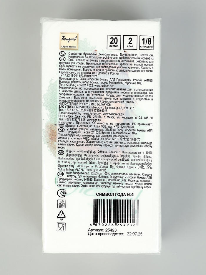 Салфетки бумажные новогодние «Символ года», 33х33, 2 слоя, 20 шт