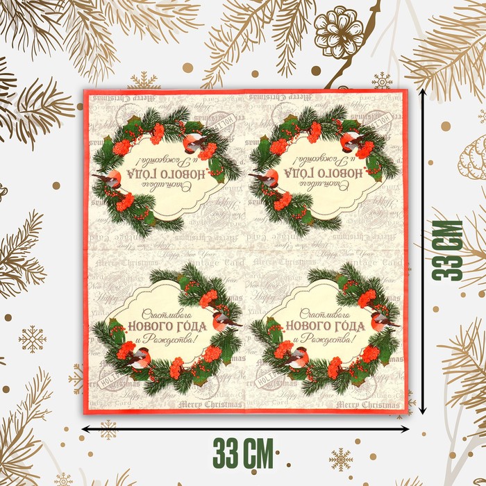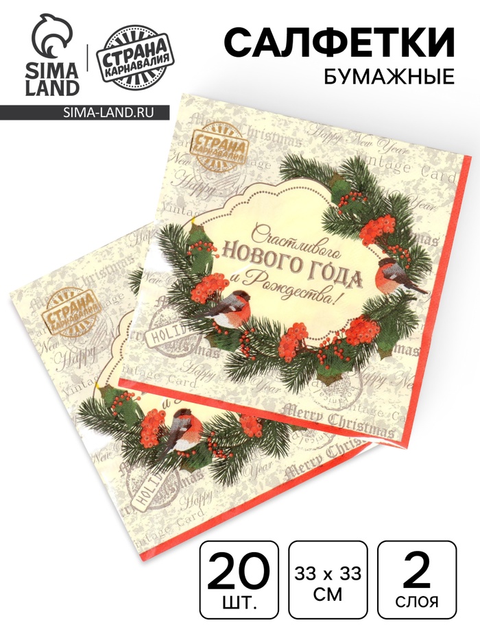 Бумажные салфетки «Счастливого Нового года» помогут создать атмосферу праздника за вашим столом. В наборе 20 салфето, украшенных новогодним рисунком. Эти салфетки идеально подойдут для праздничных мероприятий в зимний сезон, таких как Новый год, рождественские вечеринки или семейные ужины. Яркий дизайн добавит праздничного настроения вашим гостям.