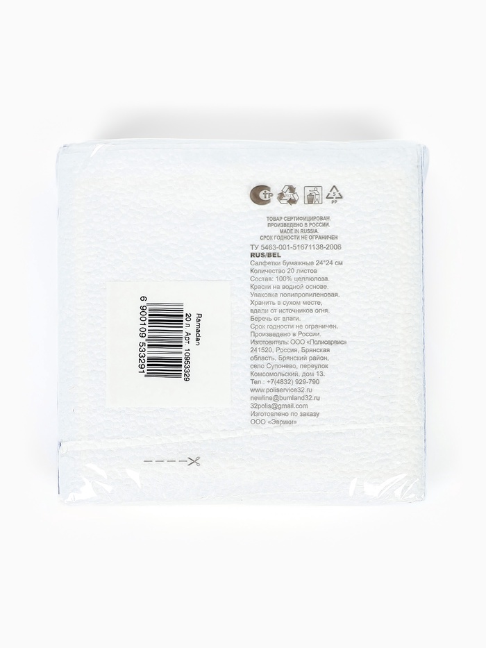 Салфетки бумажные однослойные «Ramadan», синие с золотом, 24×24 см, 20 шт.