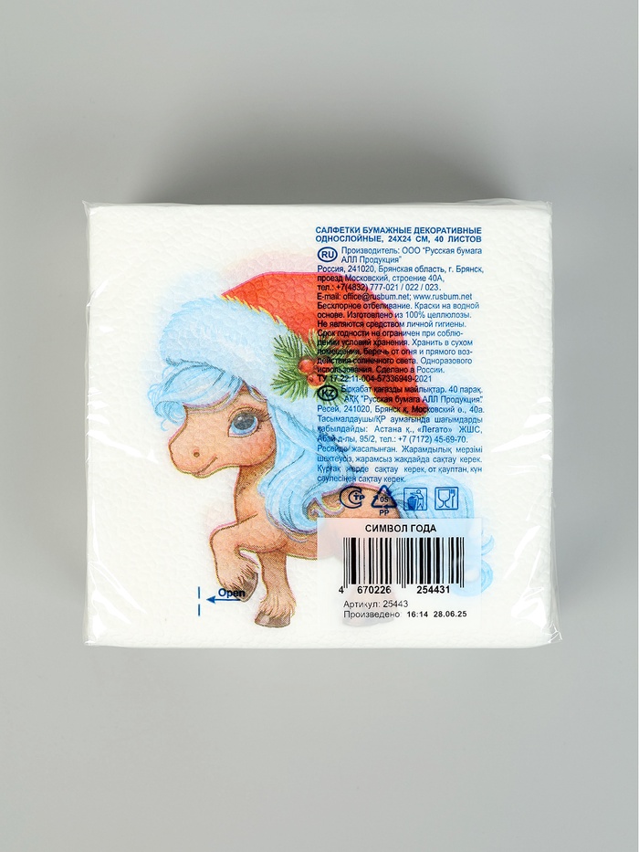 Салфетки бумажные однослойные «Символ года», 24х24, 40 шт
