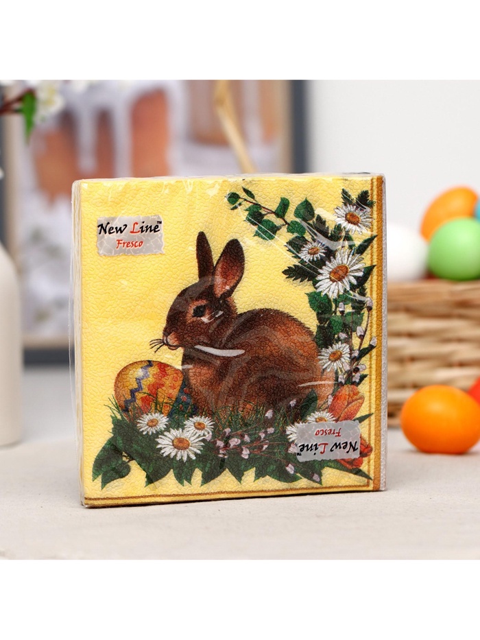 Пасхальные сервировочные бумажные салфетки New Line Fresco с рисунком «Пасхальный кролик» - это отличное украшение для вашего праздничного стола. Идеально подойдут как для сервировки, так и в качестве декора и украшения в домашних условиях или на больших мероприятиях. Праздничные салфетки с пасхальным рисунком будут хорошим подарком для родных и близких. Данные салфетки можно использовать так же для декупажа и коллажей.