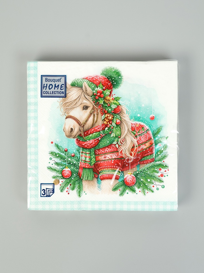 Салфетки бумажные трёхслойные «Новогодний пони», 33х33, 20шт