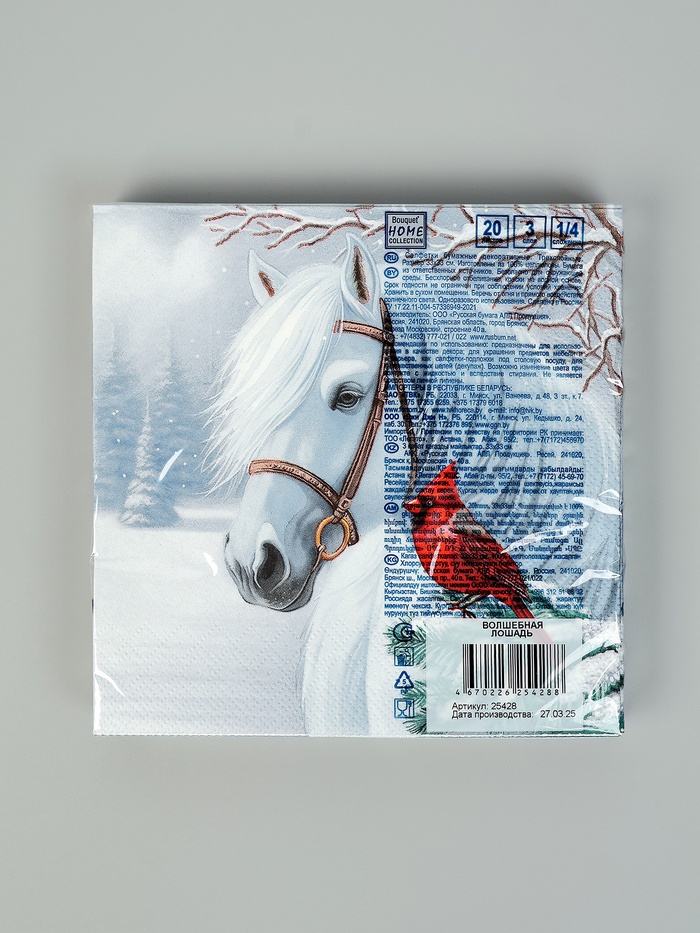 Салфетки бумажные трёхслойные «Волшебная лошадь», 33х33, 20шт