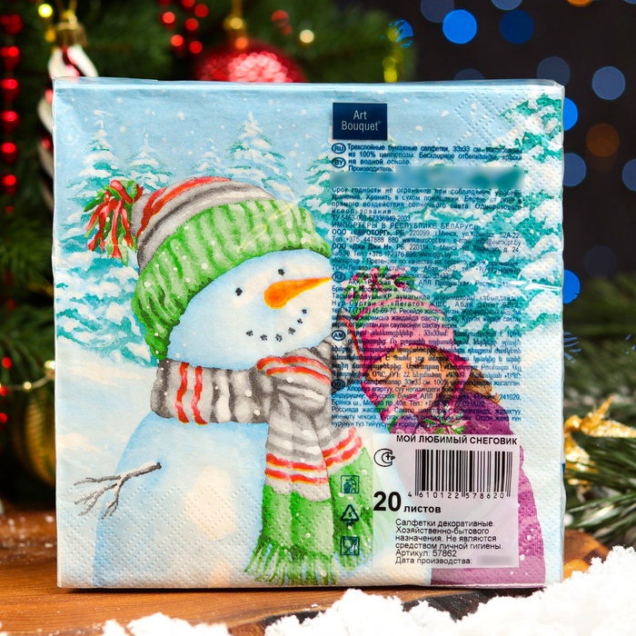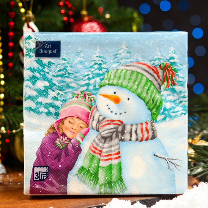 Салфетки с новогодним рисунком Art Bouquet станут отличным украшением праздничного стола. Изделия с ярким принтом добавят сервировке красочных ноток и дополнят антураж. Эта деталь придётся по душе всем гостям, которые непременно почувствуют праздничную и уютную атмосферу! Салфетки изготовлены из качественной 100% целлюлозы и имеют 3 слоя, что обеспечивает максимальную плотность и впитываемость.
