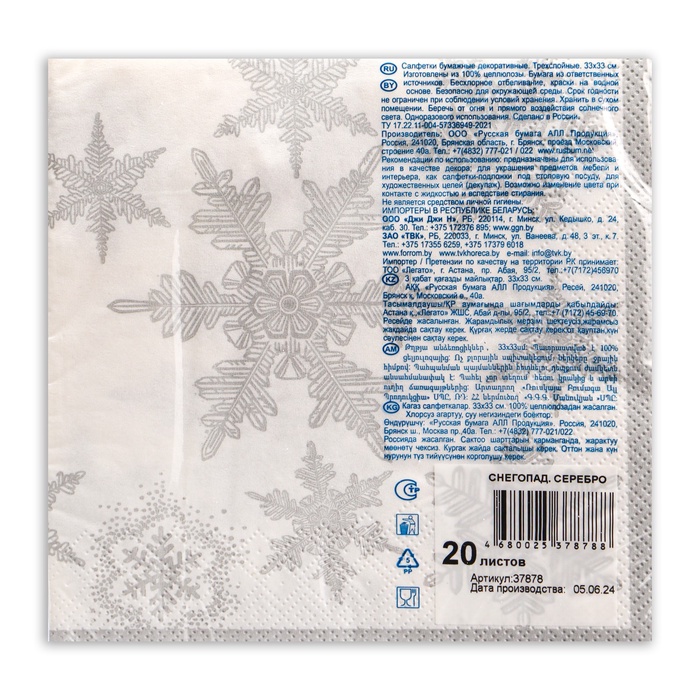 Качественные трехслойные бумажные салфетки изготовлены из качественной целлюлозы. На салфетках нанесен яркий рисунок.