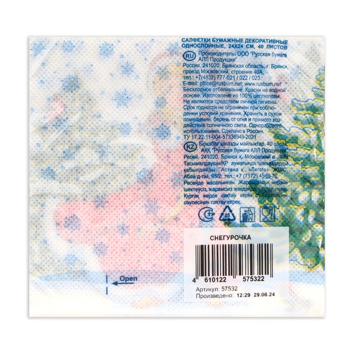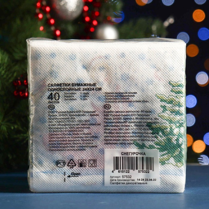 Салфетки новогодние бумажные Desna Design «Снегурочка», 1 слой, 24x24 см, 40 шт