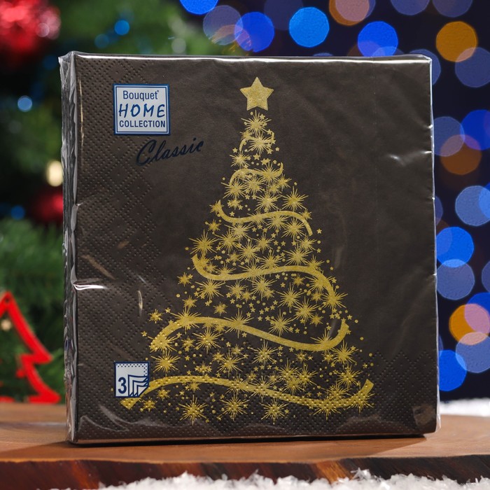 Салфетки новогодние бумажные Home Classic «Волшебная ель на черном», 3 слоя, 33×33 см, 20 шт.
