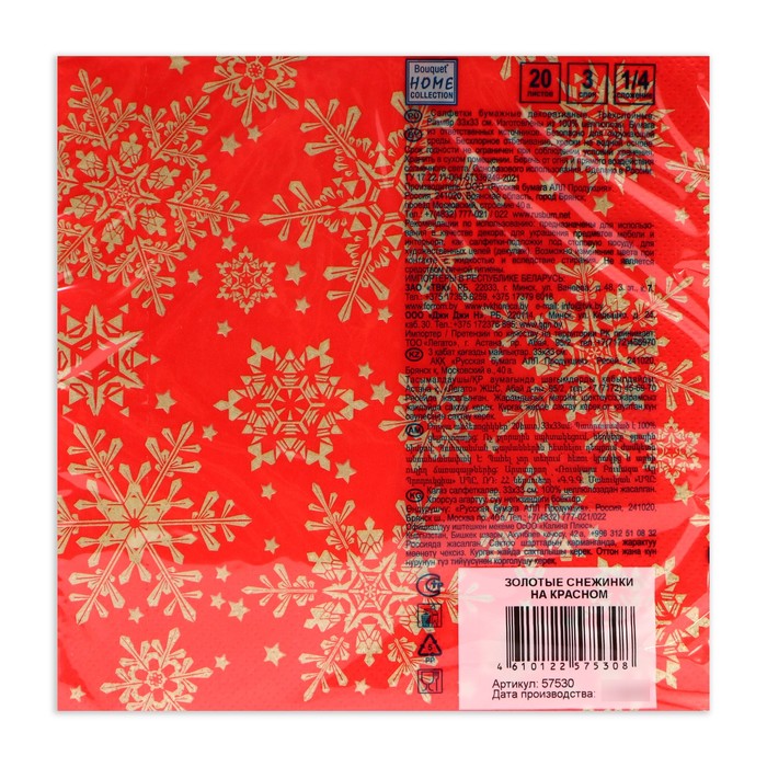 Качественные трехслойные бумажные салфетки изготовлены из качественной целлюлозы. На салфетках нанесен яркий рисунок.