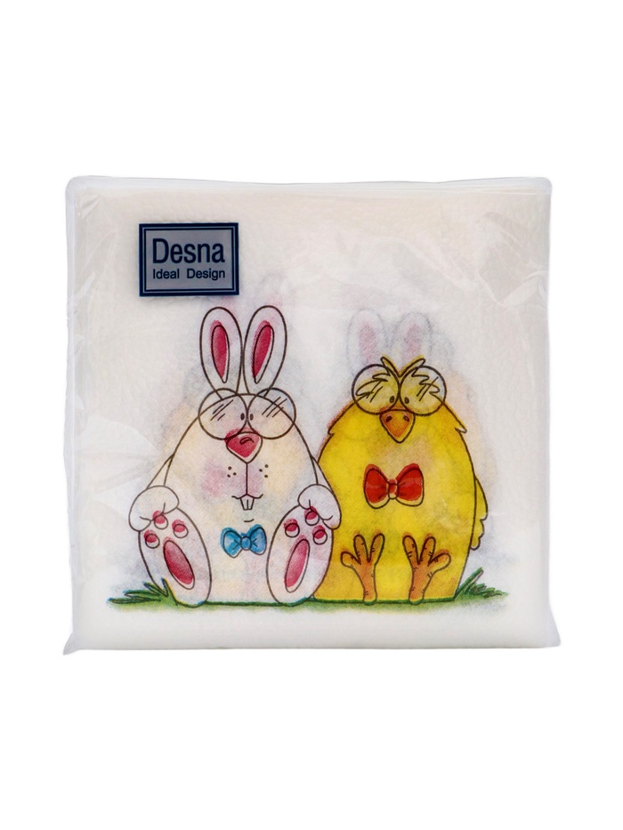 Пасхальные сервировочные бумажные салфетки Desna Design с рисунком «Сладкая парочка» - это отличное украшение для вашего праздничного стола. Идеально подойдут как для сервировки, так и в качестве декора и украшения в домашних условиях или на больших мероприятиях. Праздничные салфетки с пасхальным рисунком будут хорошим подарком для родных и близких. Данные салфетки можно использовать так же для декупажа и коллажей.