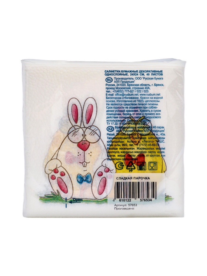Салфетка состоит из 100% целлюлозы. Размер салфетки в развёрнутом виде 24х24 см, в сложенном виде 12х12 см.