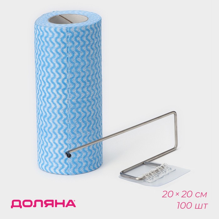 Салфетки в рулоне многоразовые безворсовые в наборе с держателем Доляна, 100 шт., 20×20 см, голубые