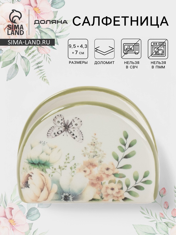 Эта салфетница не только поможет организовать подачу салфеток, но и станет стильным акцентом в вашем интерьере. Керамическая салфетница с цветочным узором создаст атмосферу тепла и гостеприимства. Салфетница «Цветы» Доляна - прекрасный выбор для тех, кто ценит красоту в мелочах.