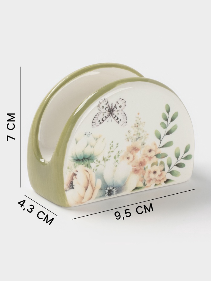 - Рисунок «Цветы и бабочки»: Милый и изящный, придает салфетнице особый шарм.