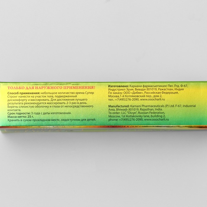 Способ применения: небольшое количество лечебного крема нанести на участок тела, подверженный дискомфорту и массировать. Для достижения лучшего результата рекомендуется использовать 2-3 раза в день. Беречь слизистую оболочку и глаза от непосредственного контакта.